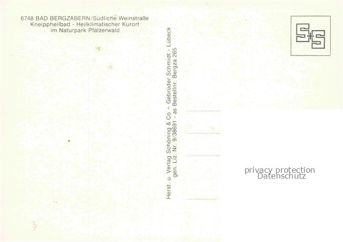 74096023 Bad Bergzabern Rheinland-Pfalz Kneippheilbad im Naturpark Pfaelzerwald Fliegeraufnahme postalisch nicht gelaufen Erhaltung siehe scans [WerneD78] KatCode: 11110007337005