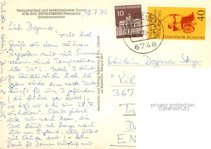 73015441 alte Postkarte Bad Bergzabern Schwanenweiher postalisch gelaufen Erhaltung siehe scans [WerneD78] KatCode: 11110007337005