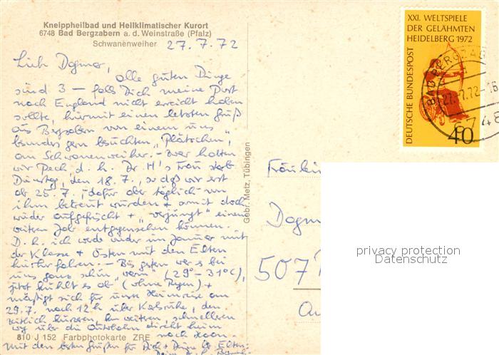 73015440 alte Postkarte Bad Bergzabern Schwanenweiher postalisch gelaufen Erhaltung siehe scans [WerneD78] KatCode: 11110007337005