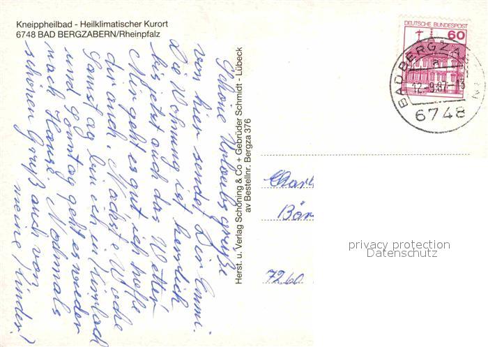 72739786 alte Postkarte Bad Bergzabern Schwanenweiher Fliegeraufnahme Haus-des-Gastes Schloss Thermalbad postalisch gelaufen Erhaltung siehe scans [LiesaD40] KatCode: 11110007337005