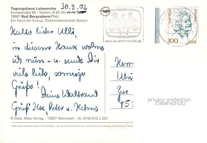 73333079 alte Postkarte Bad Bergzabern Tagungshaus Luisenruhe postalisch gelaufen Erhaltung siehe scans [LiesaD40] KatCode: 11110007337005
