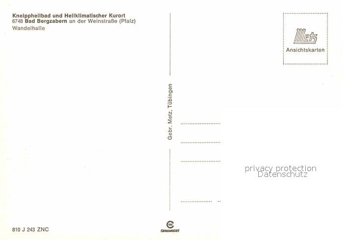 72697684 Bad Bergzabern Wandelhalle Kneippheilbad Heilklimatischer Kurort postalisch nicht gelaufen Erhaltung siehe scans [FriedD77] KatCode: 11110007337005