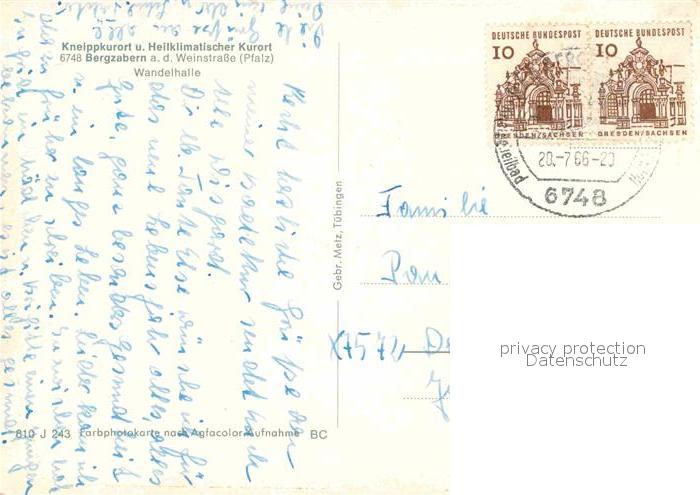 72751193 alte Postkarte Bad Bergzabern Wandelhalle Kneippkurort Heilklimatischer Kurort postalisch gelaufen Erhaltung siehe scans [FriedD77] KatCode: 11110007337005