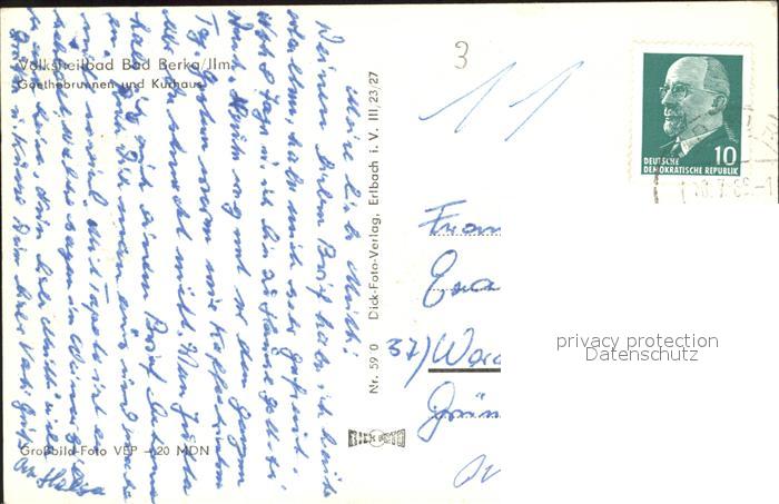 72126858 alte Postkarte Bad Berka Goethebrunnen und Kurhaus postalisch gelaufen Erhaltung siehe scans KatCode: 11110016071003
