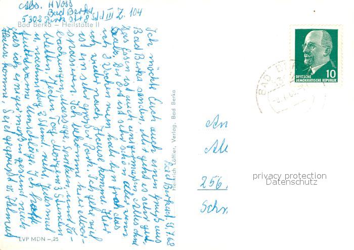 73111786 alte Postkarte Bad Berka Heilstaette II postalisch gelaufen Erhaltung siehe scans [NatalD47] KatCode: 11110016071003