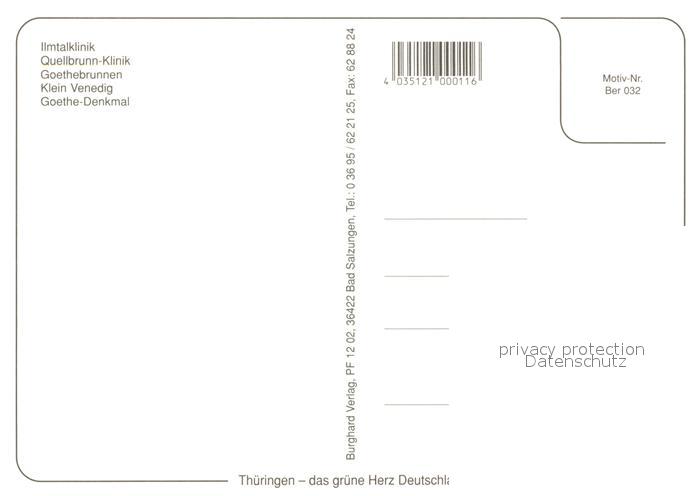 73177888 Bad Berka Ilmtalklinik Quellbrunn Klinik Goethebrunnen Klein Venedig Goethe Denkmal postalisch nicht gelaufen Erhaltung siehe scans [FriedD77] KatCode: 11110016071003