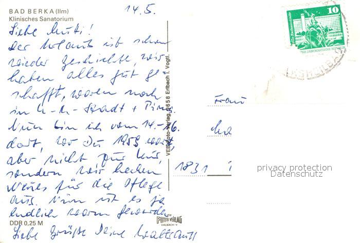 72952587 alte Postkarte Bad Berka Klinisches Sanatorium Teich postalisch gelaufen Erhaltung siehe scans [FriedD77] KatCode: 11110016071003
