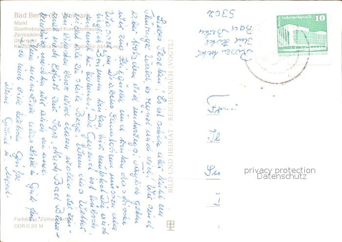 72322990 alte Postkarte Bad Berka Markt Goethebrunnen Zentralklinik postalisch gelaufen Erhaltung siehe scans KatCode: 11110016071003