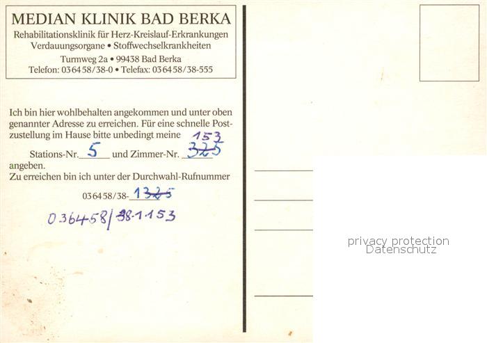 73052482 Bad Berka Median Klinik postalisch nicht gelaufen Erhaltung siehe scans [NatalD47] KatCode: 11110016071003