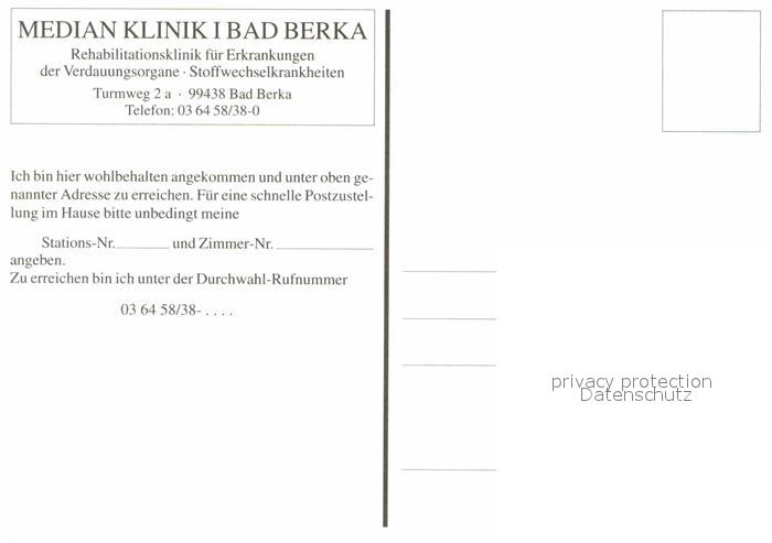 72695219 Bad Berka Median Klinik Rehaklinik postalisch nicht gelaufen Erhaltung siehe scans [FriedD77] KatCode: 11110016071003