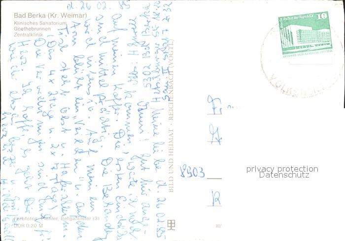 72336982 alte Postkarte Bad Berka Sanatorium Goethebrunnen Zentralklinik Panorama Volksheilbad postalisch gelaufen Erhaltung siehe scans KatCode: 11110016071003