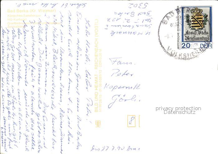 72336981 alte Postkarte Bad Berka Sanatorium HO Kurhotel Goethebrunnen Kurmittelhaus Zentralklinik Volksheilbad postalisch gelaufen Erhaltung siehe scans KatCode: 11110016071003