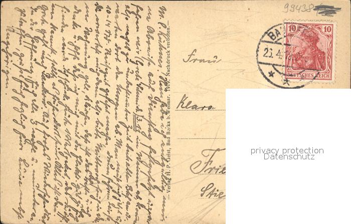 72463549 alte Postkarte Bad Berka Villen am Adelsberge postalisch gelaufen Erhaltung siehe scans KatCode: 11110016071003