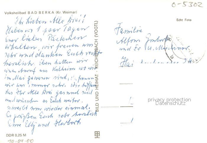 73046239 alte Postkarte Bad Berka Volksheilbad postalisch gelaufen Erhaltung siehe scans [KathaD81] KatCode: 11110016071003