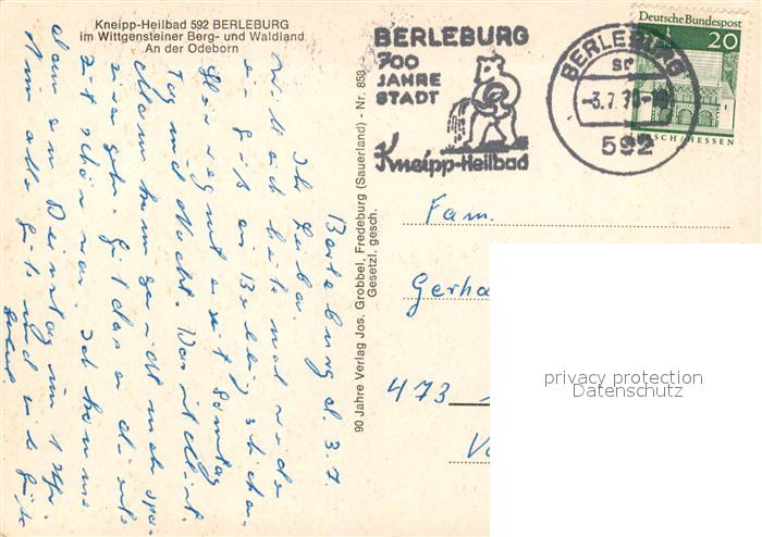 73333161 alte Postkarte Bad Berleburg An der Odeborn postalisch gelaufen Erhaltung siehe scans [WerneD78] KatCode: 11110005970004