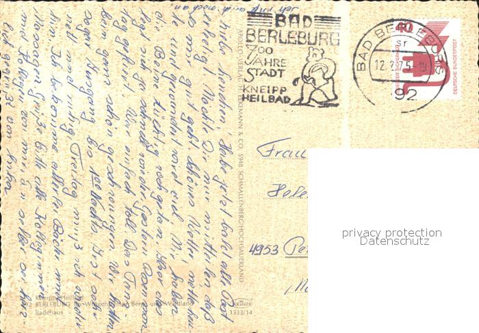 72513394 alte Postkarte Bad Berleburg Badehaus postalisch gelaufen Erhaltung siehe scans KatCode: 11110005970004