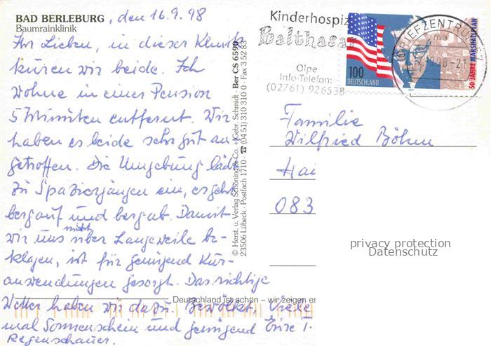 74036423 alte Postkarte Bad Berleburg Baumrainklinik postalisch gelaufen Fliegeraufnahme Erhaltung siehe scans [FriedD77] KatCode: 11110005970004