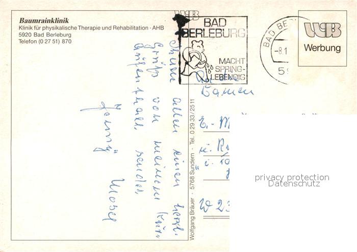 73205825 alte Postkarte Bad Berleburg Baumrainklinik postalisch gelaufen Erhaltung siehe scans [NatalD47] KatCode: 11110005970004