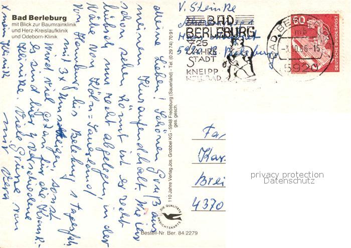 73171801 alte Postkarte Bad Berleburg Fliegeraufnahme Baumrainklinik Odeborn-Klinik postalisch gelaufen Erhaltung siehe scans [NatalD47] KatCode: 11110005970004