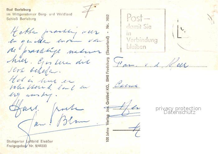 72728993 alte Postkarte Bad Berleburg Fliegeraufnahme Schloss postalisch gelaufen Erhaltung siehe scans [AndreD76] KatCode: 11110005970004