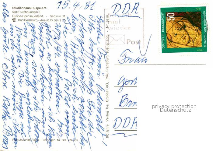 72684755 alte Postkarte Bad Berleburg Fliegeraufnahme Studienhaus Ruespe postalisch gelaufen Erhaltung siehe scans [AndreD76] KatCode: 11110005970004