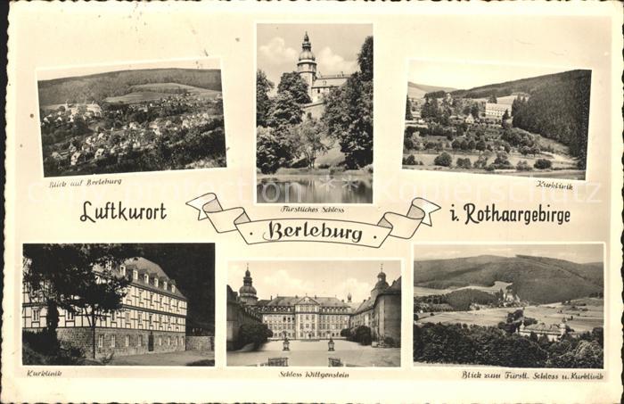 71942365 alte Postkarte Bad Berleburg Fuerstl Schloss Kurklinik Schloss Wittgenstein Panorama postalisch gelaufen Erhaltung siehe scans KatCode: 11110005970004