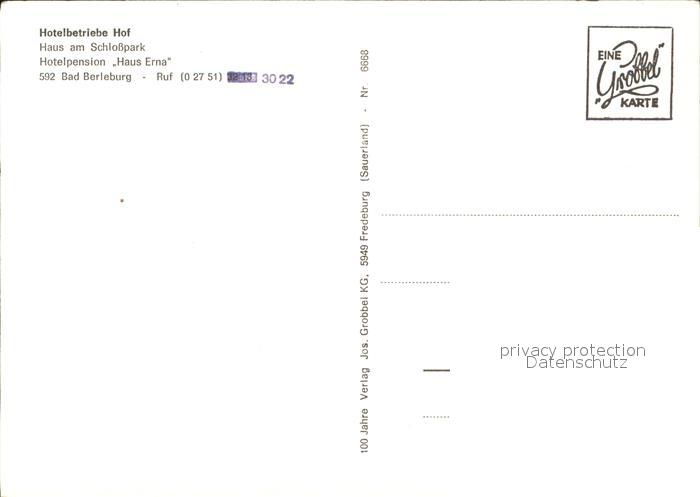 Bad Berleburg Haus am Schlosspark Hotel postalisch nicht gelaufen Erhaltung siehe scans