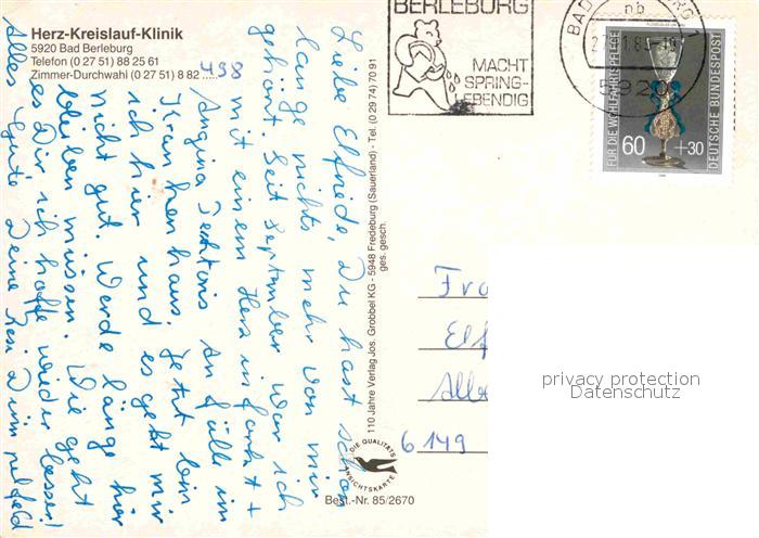 72807457 alte Postkarte Bad Berleburg Herz Kreislauf Klinik Hallenbad Fitness postalisch gelaufen Erhaltung siehe scans [FriedD77] KatCode: 11110005970004