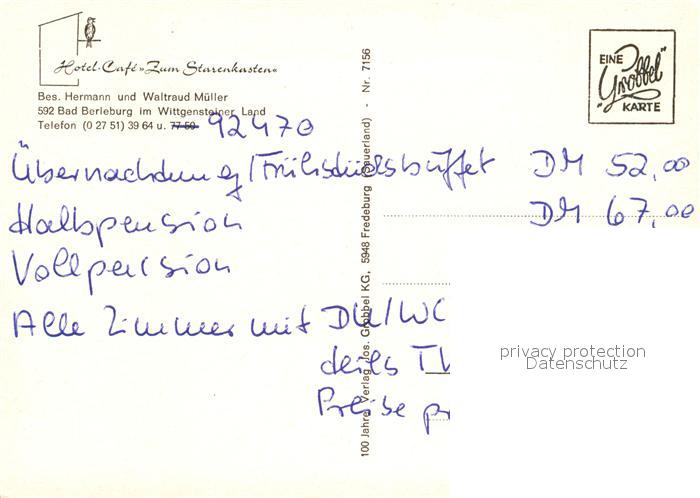 73105313 Bad Berleburg Hotel Zum Starenkasten Cafe postalisch nicht gelaufen Erhaltung siehe scans [WerneD78] KatCode: 11110005970004