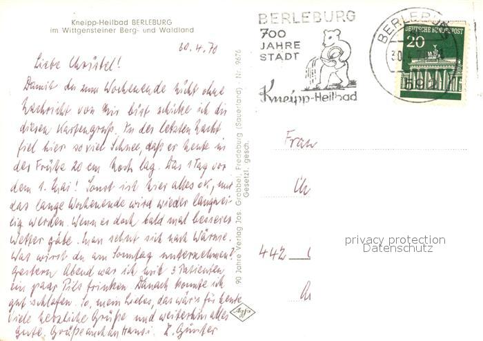 73298998 alte Postkarte Bad Berleburg Klinik Wittgenstein postalisch gelaufen Erhaltung siehe scans [PaolaD17] KatCode: 11110005970004