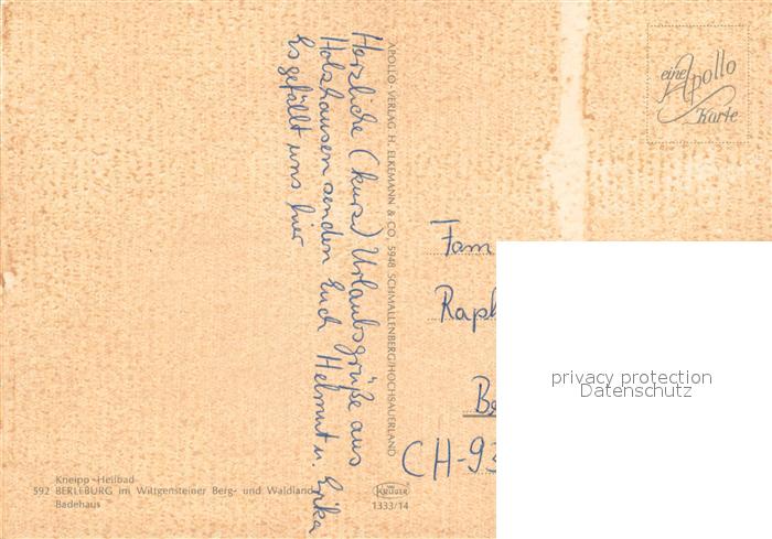 73655282 Bad Berleburg Kneipp Heilbad Badehaus postalisch nicht gelaufen Erhaltung siehe scans [FriedD77] KatCode: 11110005970004