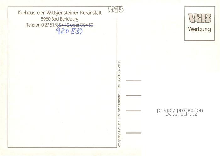 73841400 Bad Berleburg Kurhaus der Wittgensteiner Kuranstalt Gastraeume Veranstaltungssaal postalisch nicht gelaufen Erhaltung siehe scans [WerneD78] KatCode: 11110005970004