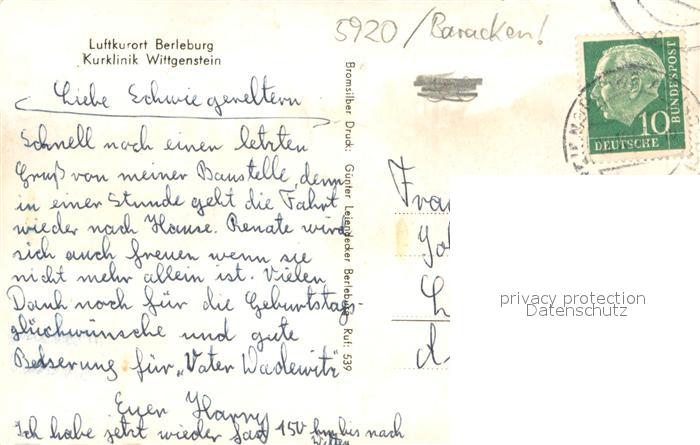 73700038 alte Postkarte Bad Berleburg Kurklinik Wittgenstein postalisch gelaufen Erhaltung siehe scans [FriedD77] KatCode: 11110005970004
