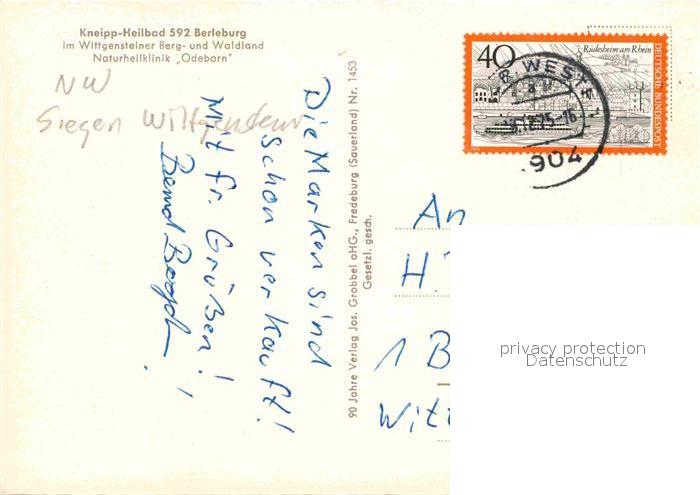 72913573 alte Postkarte Bad Berleburg Naturheilklinik Odeborn Kneipp Heilbad Wittgensteiner Bergland postalisch gelaufen Erhaltung siehe scans [FriedD77] KatCode: 11110005970004