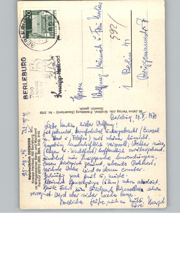 31141540 Bad Berleburg Naturheilklinik Odeborn postalisch nicht gelaufen KatCode: