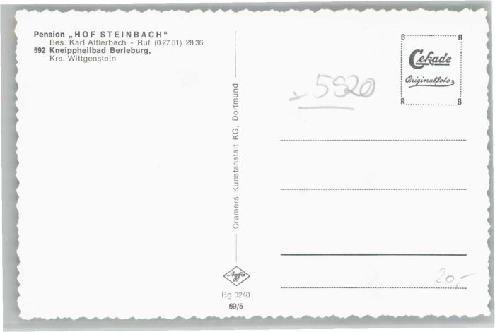 40676488 Bad Berleburg Pension Hof Steinbach KatCode 11110005970004