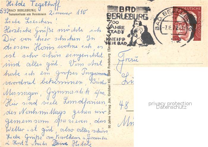 73010222 alte Postkarte Bad Berleburg Sanatorium am Baumrain postalisch gelaufen Erhaltung siehe scans [WerneD78] KatCode: 11110005970004