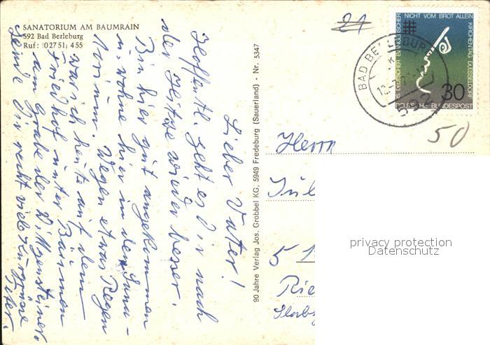 72573397 alte Postkarte Bad Berleburg Sanatorium am Baumrain postalisch gelaufen Erhaltung siehe scans [KathaD79] KatCode: 11110005970004