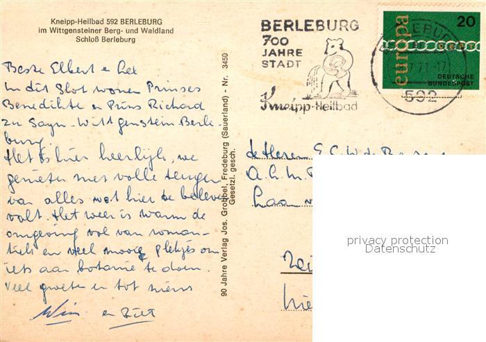 72932458 alte Postkarte Bad Berleburg Schloss Berleburg postalisch gelaufen Erhaltung siehe scans [WerneD78] KatCode: 11110005970004