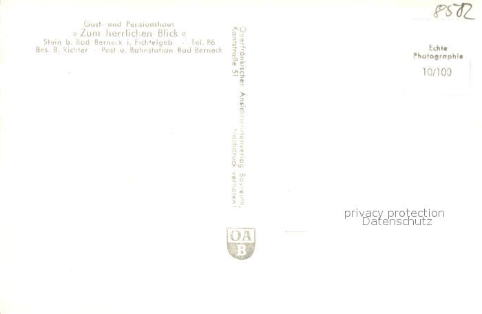 43350160 Bad Berneck Burgruine Stein Gasthaus Zum herrlichen Blick Waldpartie Oelschnitz Oelschnitztal postalisch nicht gelaufen Erhaltung siehe scans [WerneD78] KatCode: 11110009472116