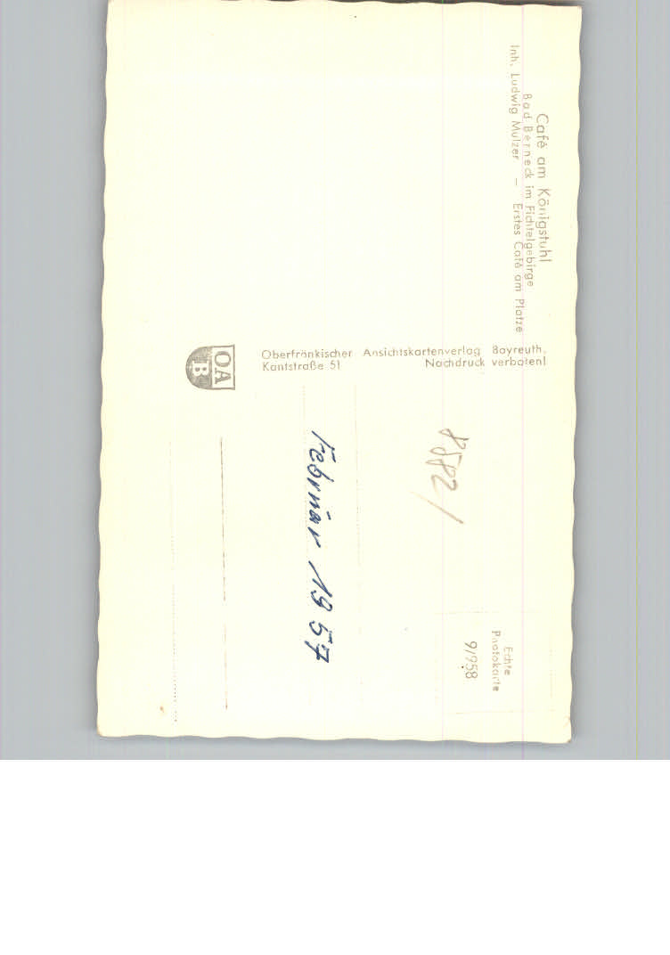 31163633 Bad Berneck Cafe am Koenigstuhl postalisch nicht gelaufen KatCode: 11110009472116