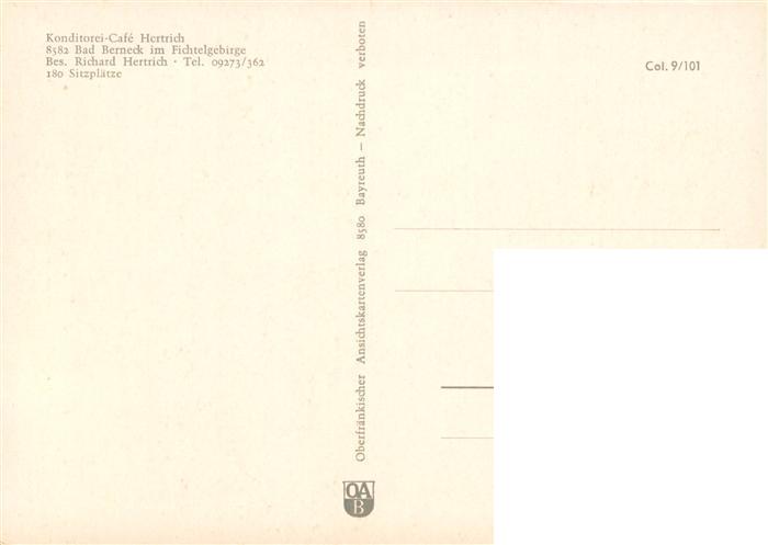 73898331 Bad Berneck Cafe Hertrich Gastraeume postalisch nicht gelaufen Erhaltung siehe scans [WerneD78] KatCode: 11110009472116