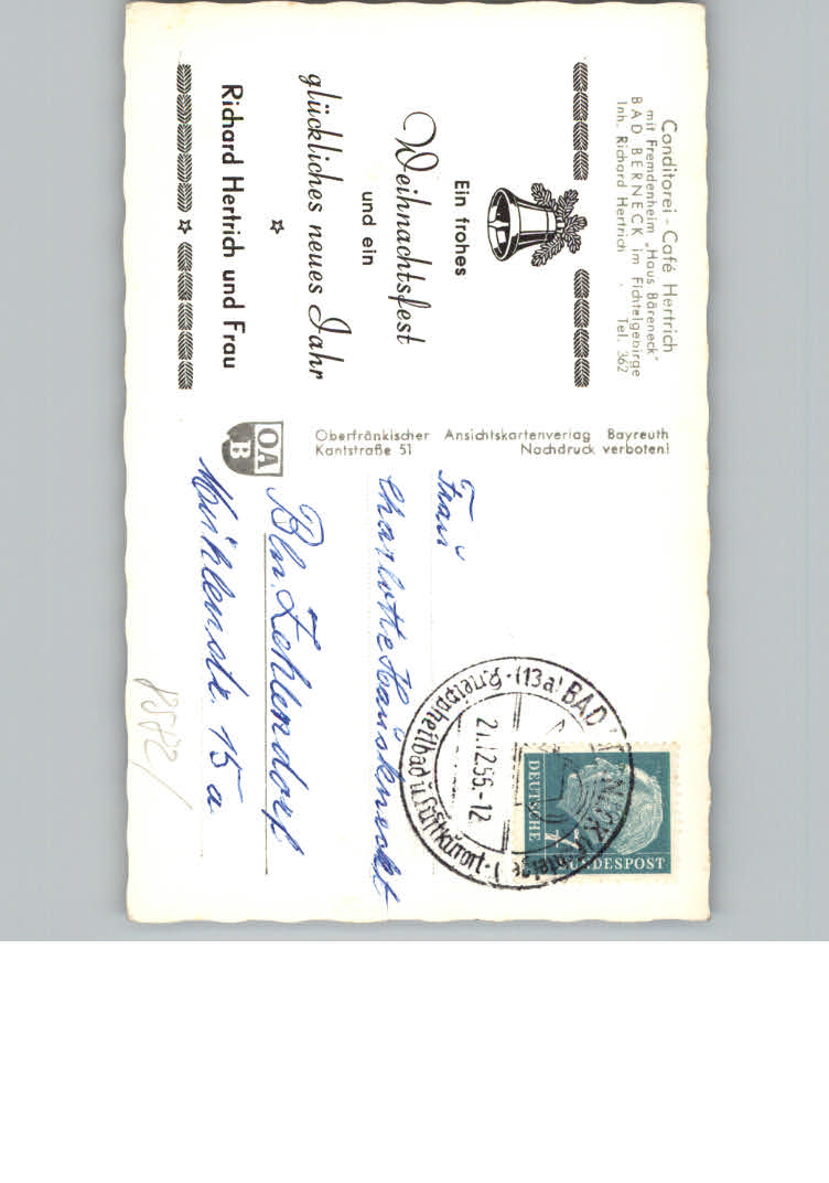 31170362 Bad Berneck Cafe Konditorei Pension Hertrich postalisch nicht gelaufen KatCode: 11110009472116