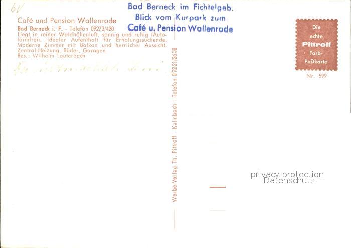72537441 alte Postkarte Bad Berneck Cafe Pension Wallenrode Kurpark postalisch gelaufen Erhaltung siehe scans [WerneD78 kt117box] KatCode: 11110009472116