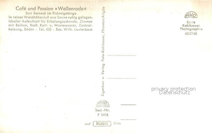 73603409 Bad Berneck Cafe Pension Wallenrode postalisch nicht gelaufen Erhaltung siehe scans [KathaD81] KatCode: 11110009472116