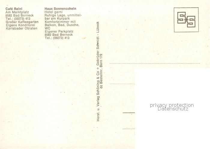 73860101 Bad Berneck Cafe Reinl Kaffeegarten Haus Sonnenschein Hotel garni Gastraeume postalisch nicht gelaufen Erhaltung siehe scans [WerneD78] KatCode: 11110009472116