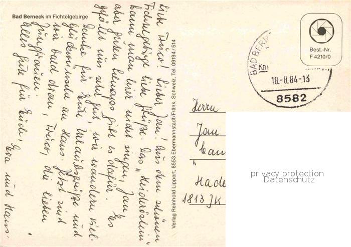 72787560 alte Postkarte Bad Berneck Fliegeraufnahme postalisch gelaufen Erhaltung siehe scans [FriedD77] KatCode: 11110009472116