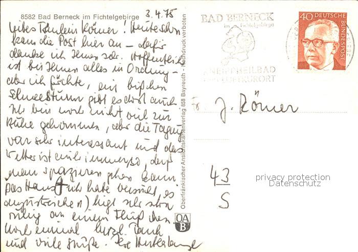 72534085 alte Postkarte Bad Berneck Fliegeraufnahme postalisch gelaufen Erhaltung siehe scans [FriedD77 kt118box] KatCode: 11110009472116