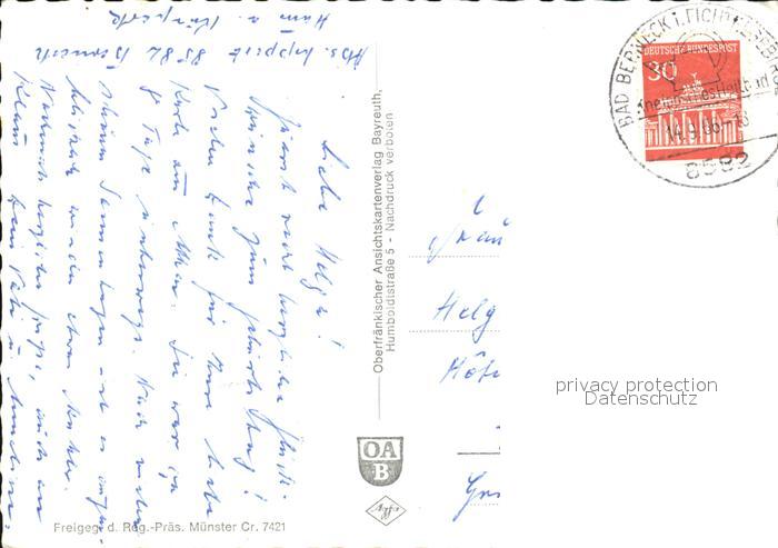 72530032 alte Postkarte Bad Berneck Fliegeraufnahme postalisch gelaufen Erhaltung siehe scans KatCode: 11110009472116