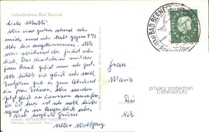 72202567 alte Postkarte Bad Berneck Fliegeraufnahme postalisch gelaufen Erhaltung siehe scans KatCode: 11110009472116